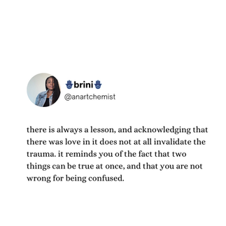for the sake of your continued peace, you may need to acknowledge that there were, in fact, “good times.” it’s okay. breathe… because with that acknowledgement comes the realization and acceptance that those times were not enough. you deserve more! allow the “good” to clue you in on what this version of yourself requires. is it respect? is it loyalty? is it a partner who doesn’t yell, or family that doesn’t shame and embarrass you? you can have it. you are worthy of having it.